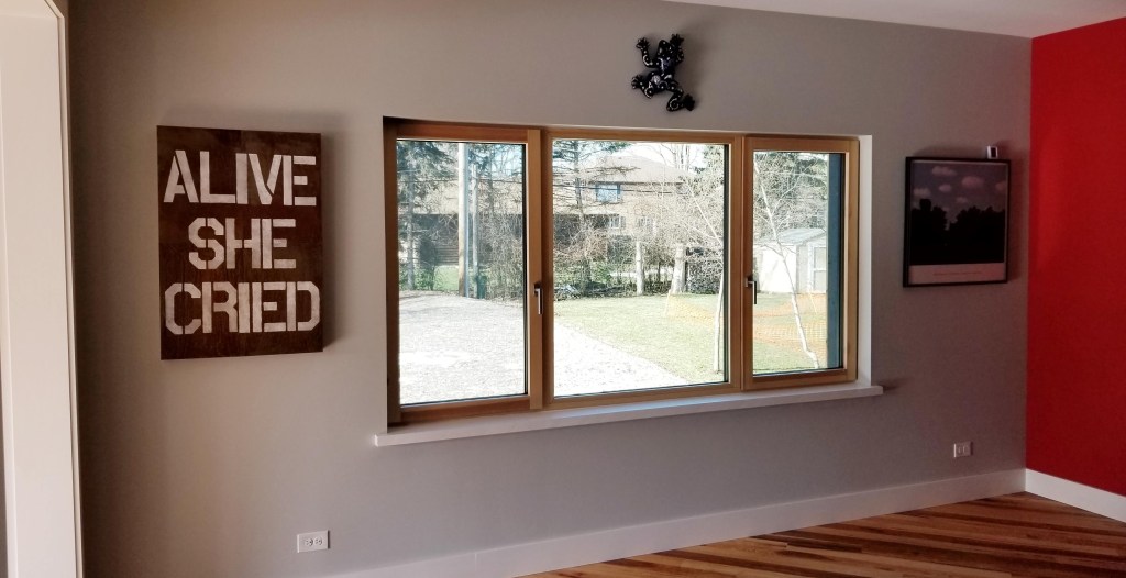 Although our bedroom technically faces west, because of the size of our bedroom and family room windows (4.5′ x 9′), and the oversized door opening to the family room that faces south, we end up with a flood of morning light regardless. The intensity of the light is far less than direct east-facing, but the overall effect is similar. On paper this shouldn’t really work, but reality shows otherwise. Something to consider for those in the design stage of their own build.