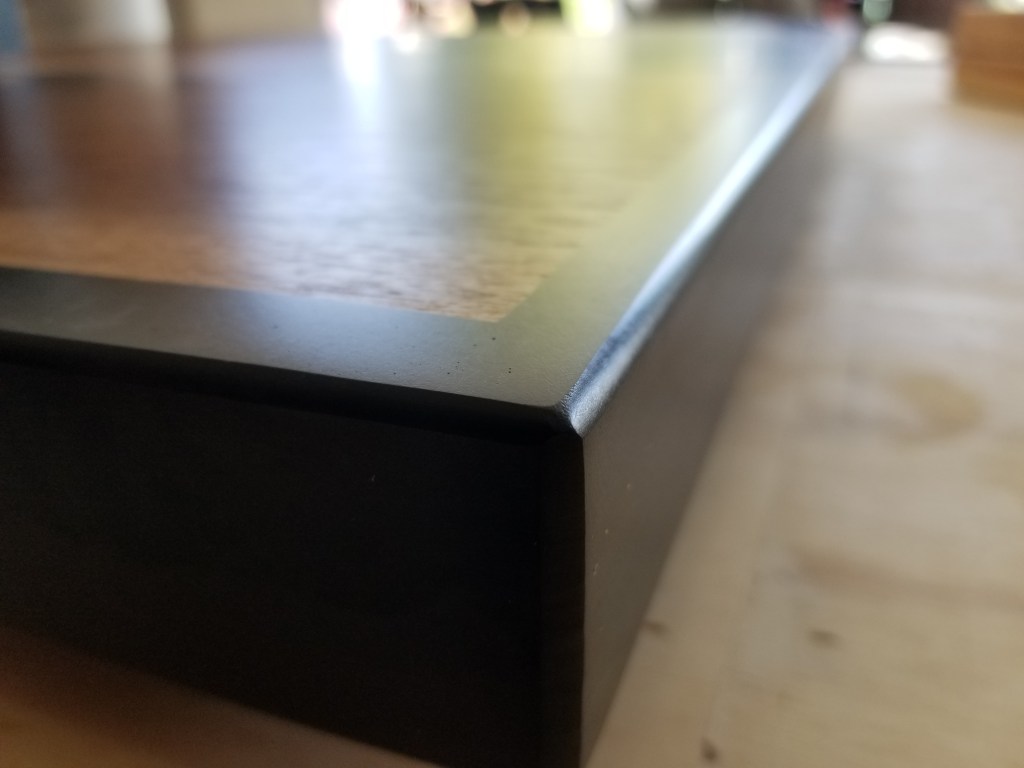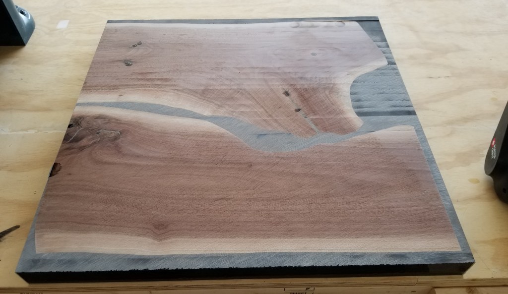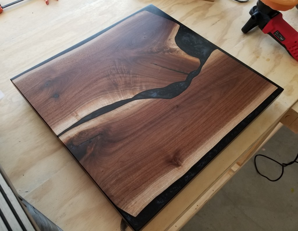 I thought about using a white metallic epoxy, but anytime I’ve used a white pigment with epoxy it’s always yellowed to one extreme or another over time (typically within the first year). Instead, I opted for a metallic black, which also had some metallic silver mixed in.