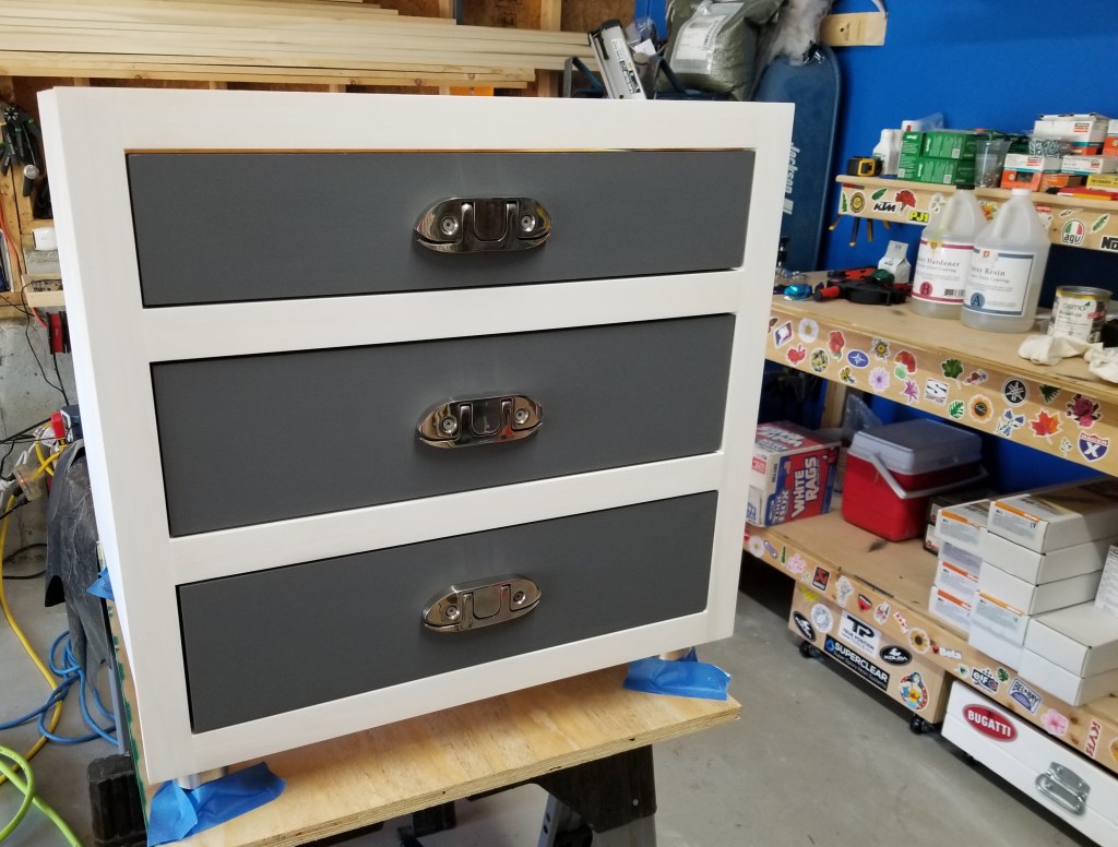Like the ‘Mother’ wall art piece, I used a whitewash finish on the face frame and the sides, sealed once again with Osmo. I used the Blum slides for the drawers.