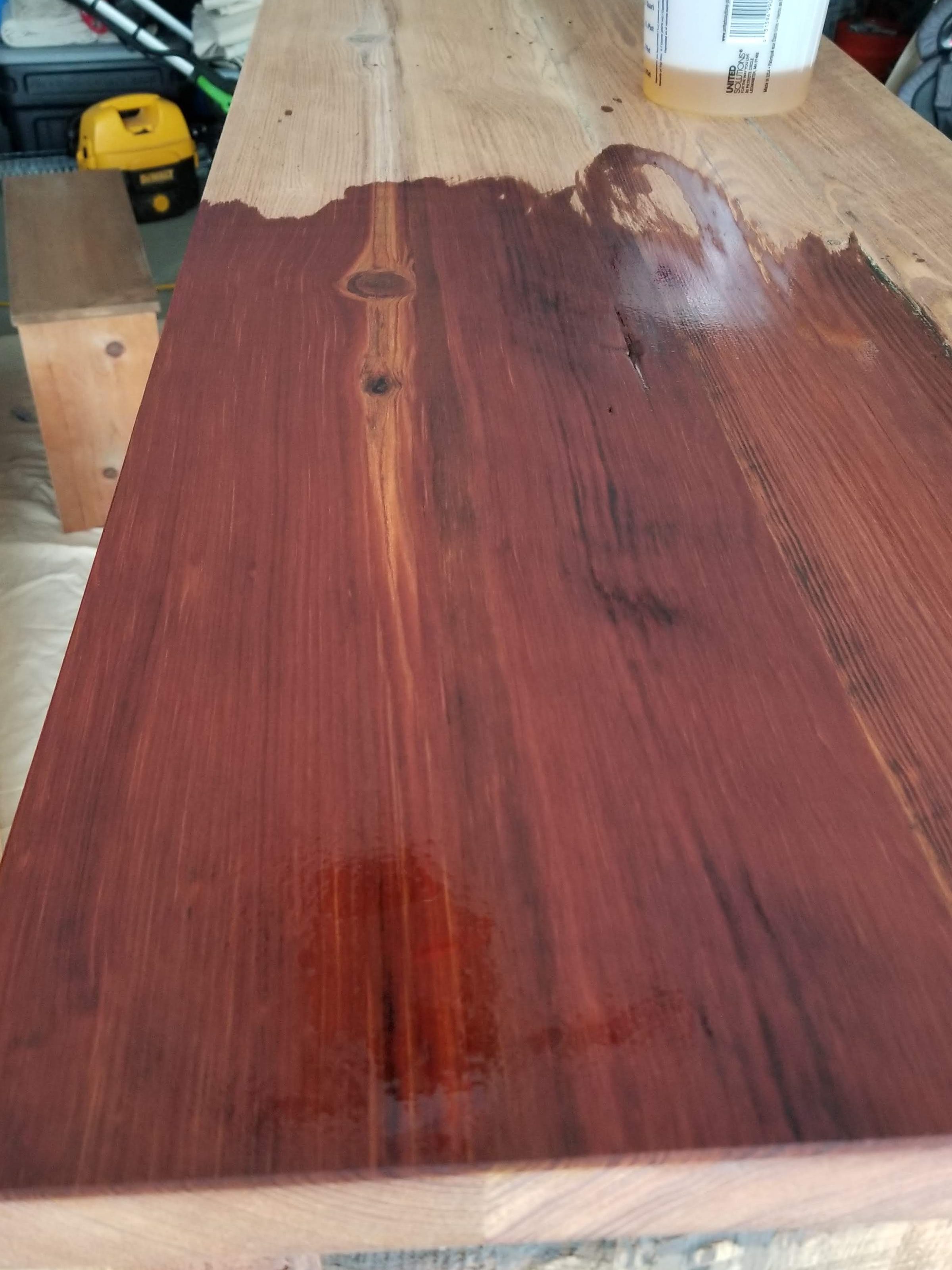 Below, after a second coat of Rubio has been done. Although it belies the name, I usually end up with better results after a light sand and a second coat of Rubio has been applied: