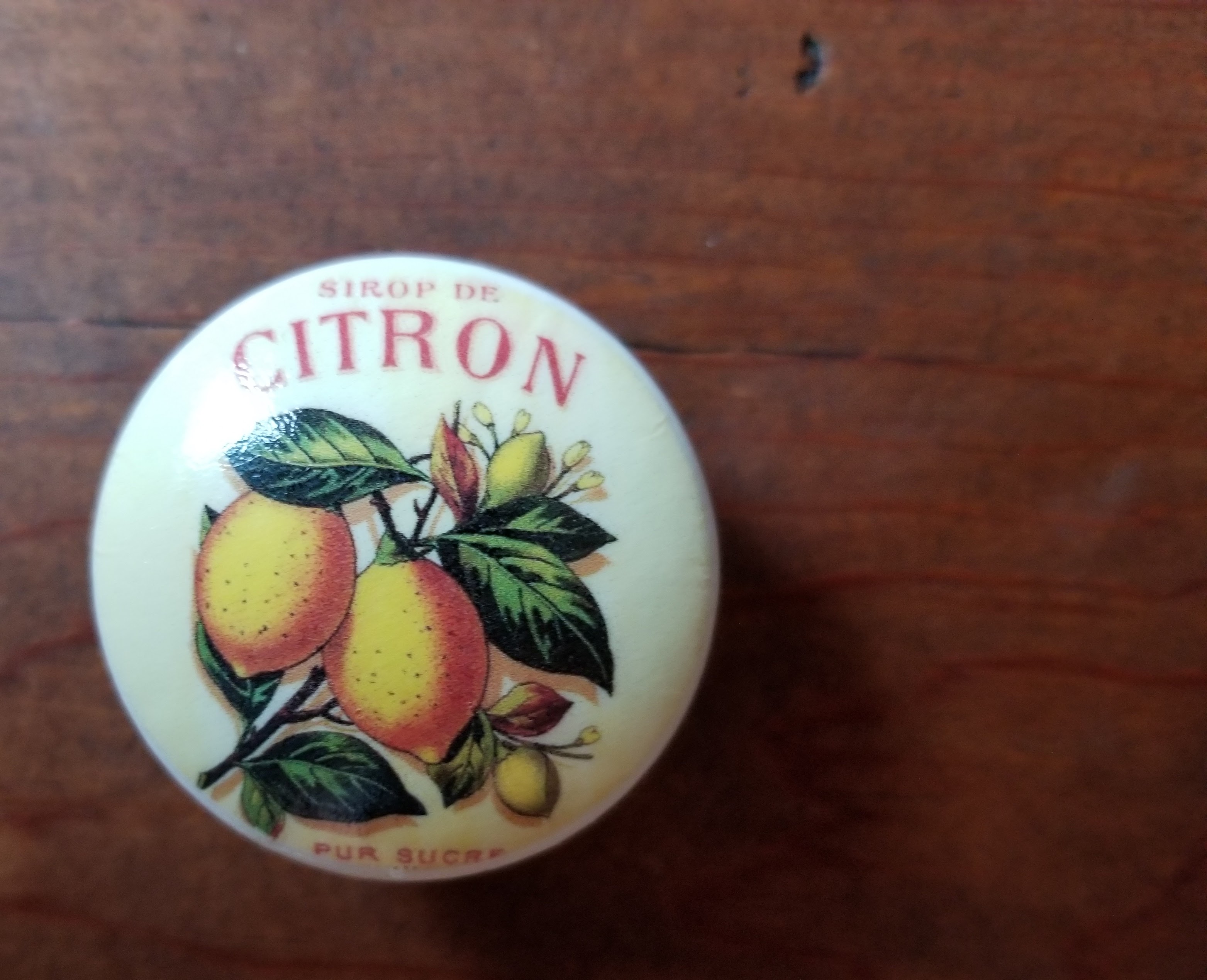 In the case of the drawer pulls, I found these vintage fruit label ones on Etsy:
