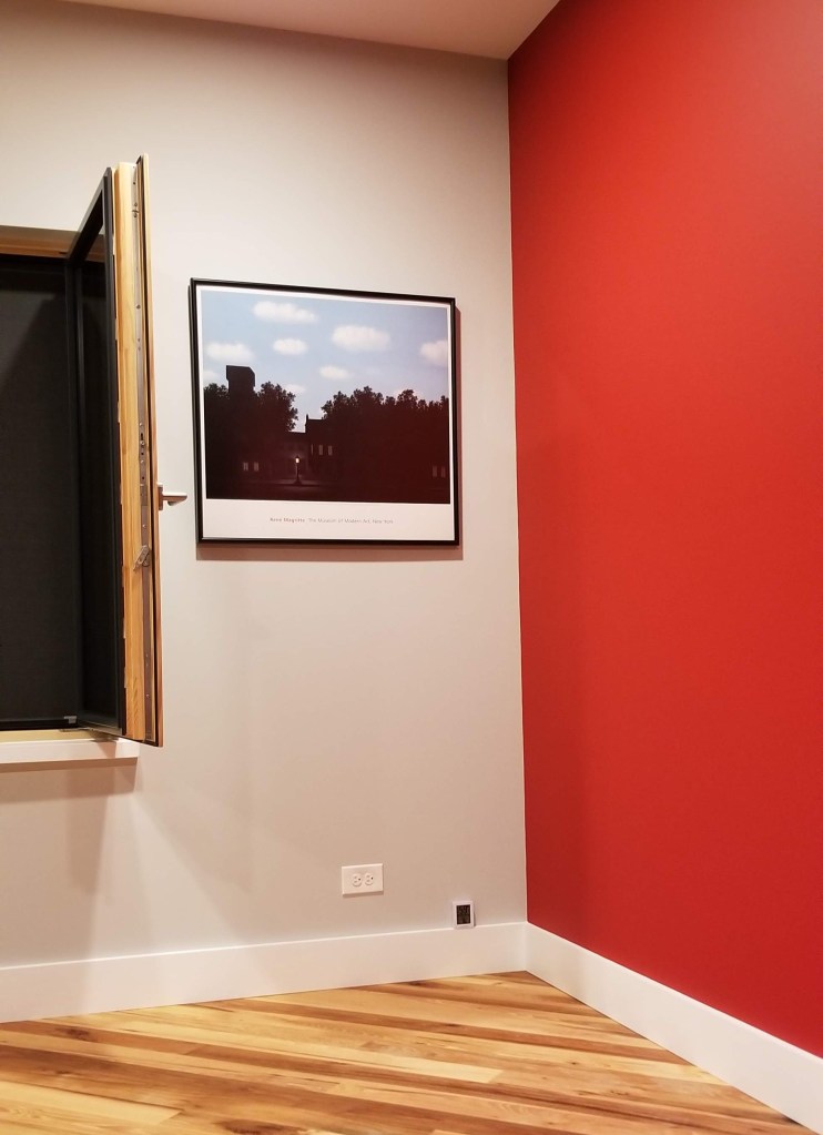 Below, this framed reproduction of Magritte’s ‘Empire of Light‘ is one of the few items that carried over into our new house: