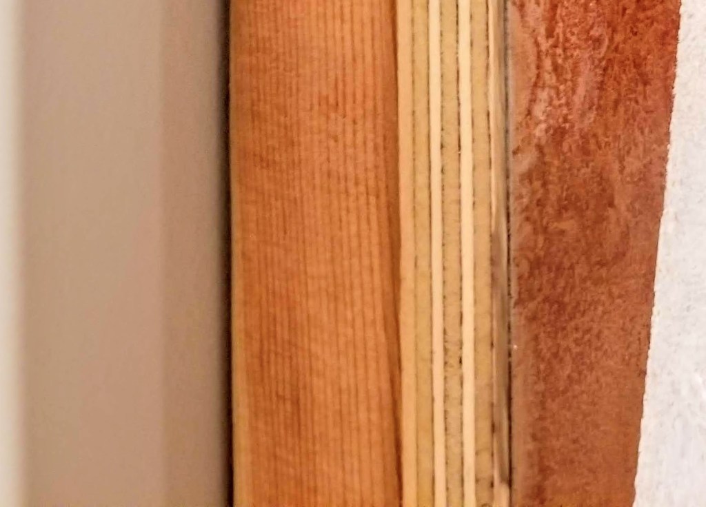 The four individual panels were then mounted on a sheet of plywood. The plywood had been attached to 2×4’s, making it simple to hang the piece on the wall: