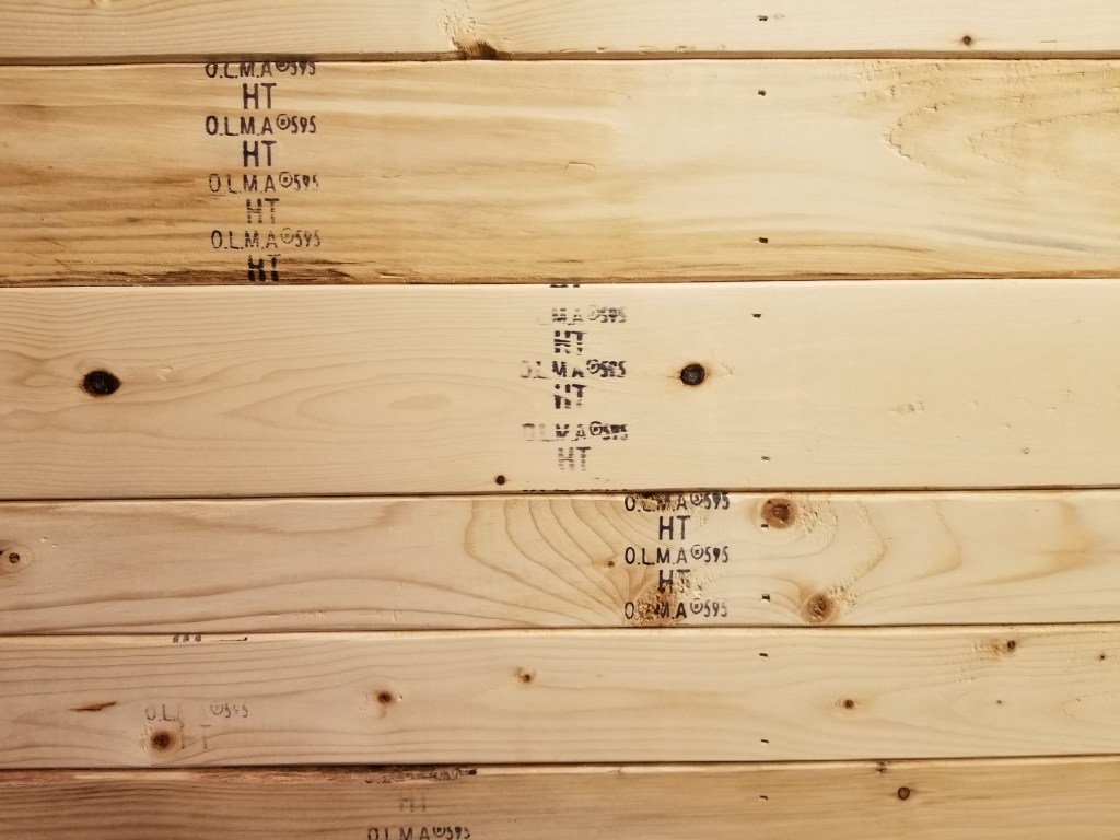 After completing a light sanding, trying to hold onto the grading stamps as much as possible, I then whitewashed the 1×4’s to complete the rustic look. The goal was a weathered look: