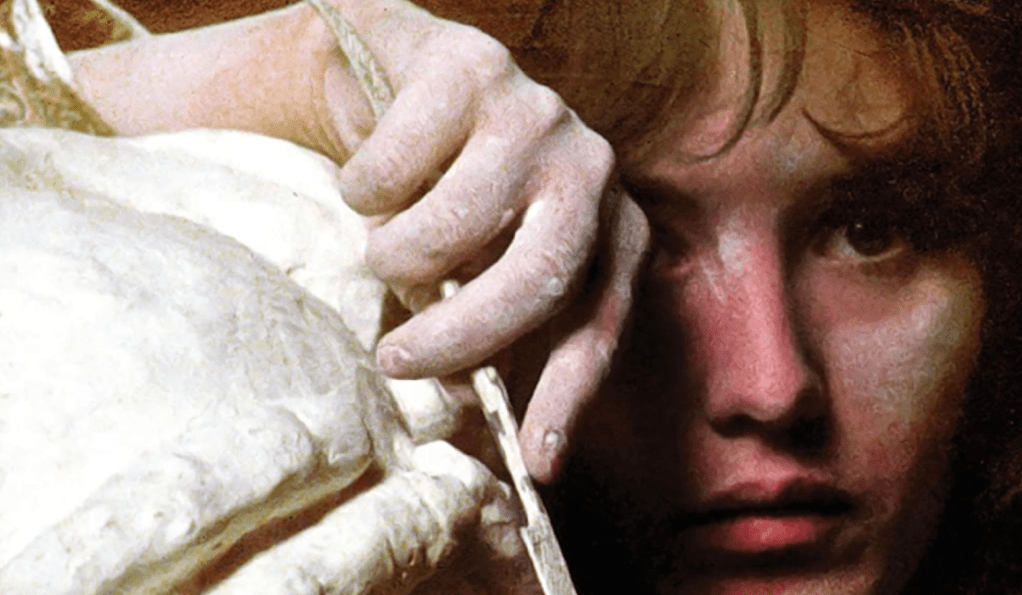An added touch was positioning him on the green accent wall so that he’s clearly visible in the mirror above the sink, which, with its delicate butterflies, hints at the tragic lakeside scene with the little girl and her flowers from the classic James Whale movie:
