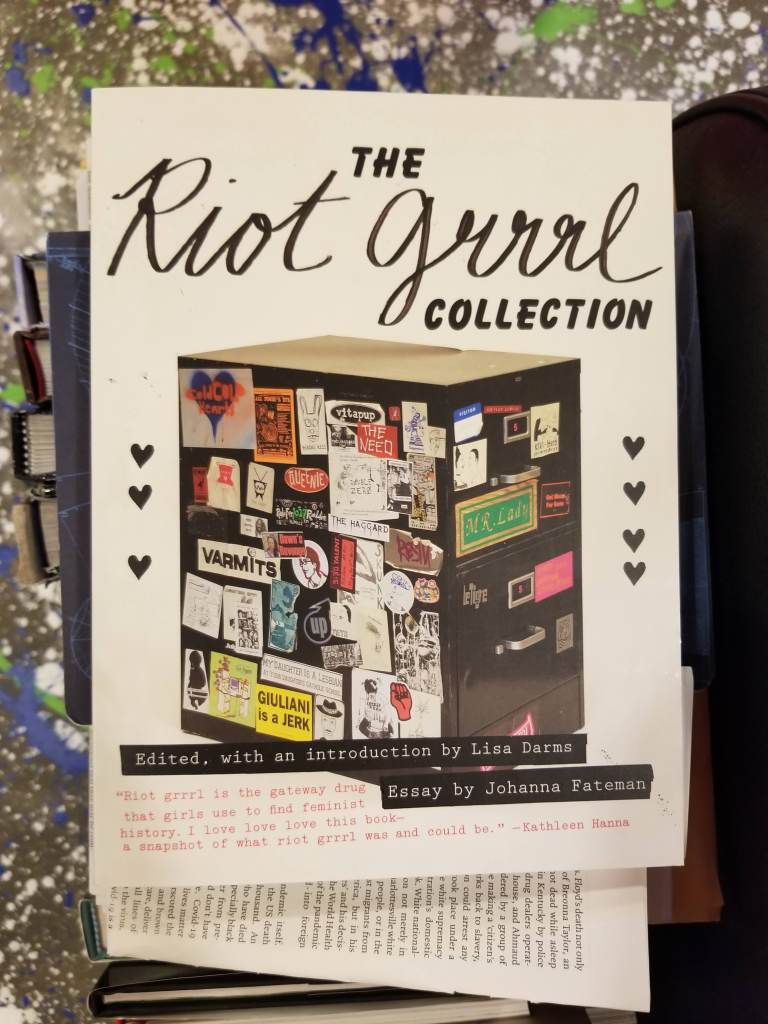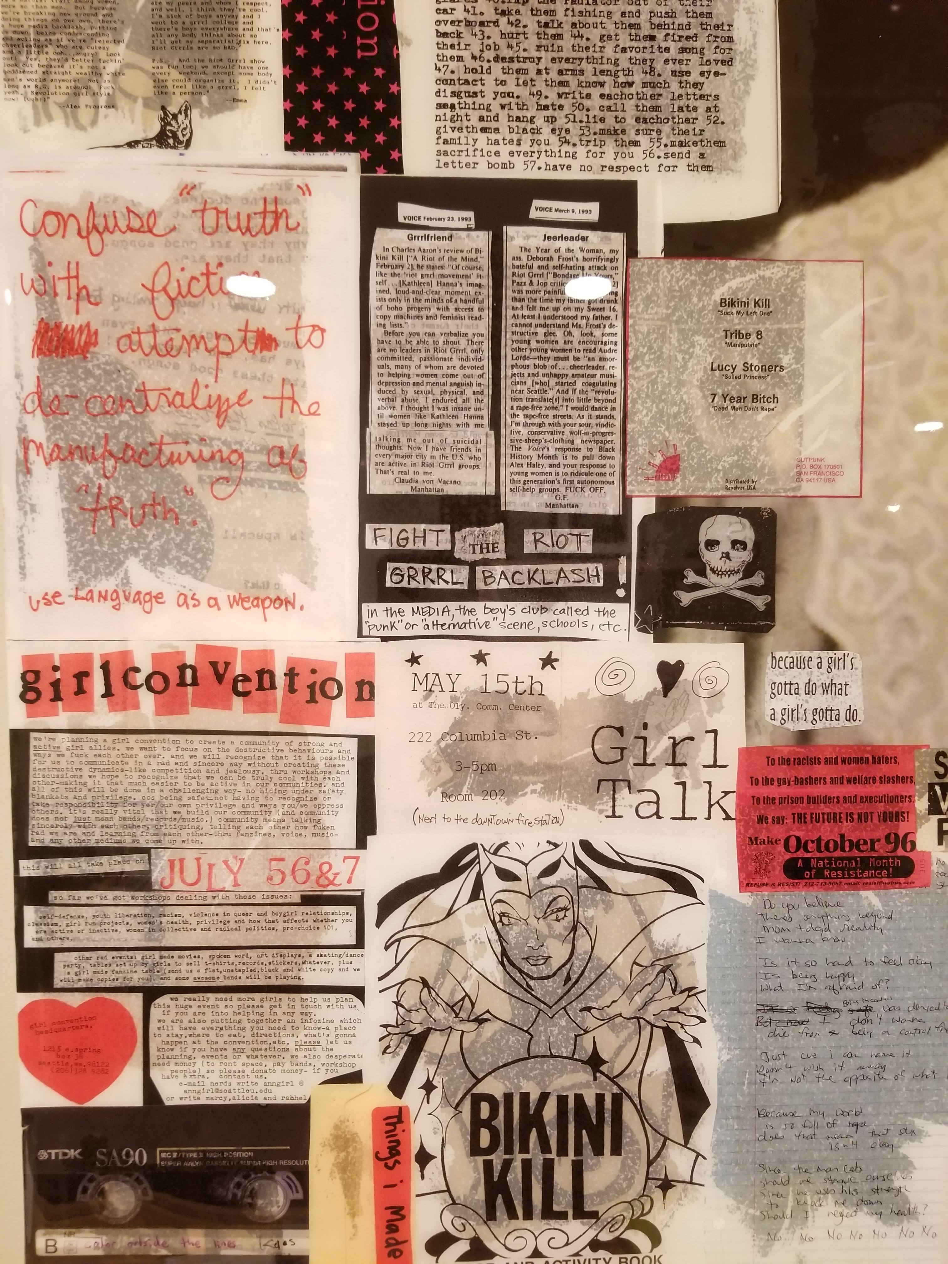 Below, a framed set of Ani Difranco lyrics is paired with a vintage railroad signaling light: